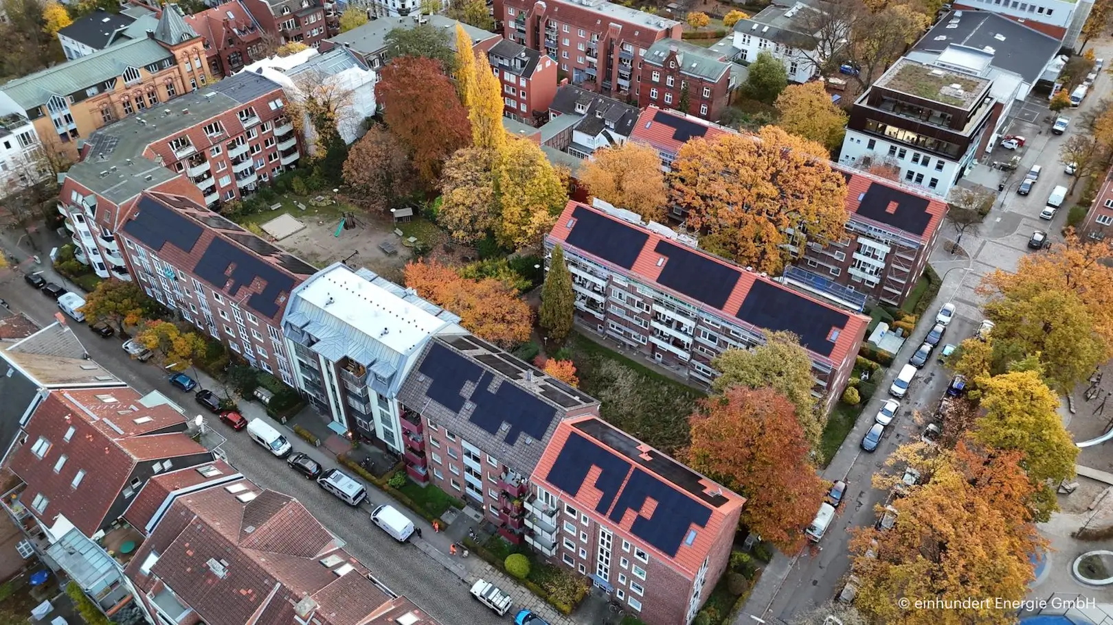 In der Hospitalstraße sowie den angrenzenden Straßenzügen wurden im Herbst 2025 gemeinsam mit unserem Partner einhundert Energie GmbH auf den Dächern mehrerer Gebäude Photovoltaikmodule installiert. Sie können 99 Wohneinheiten an 11 Hauseingängen versorgen und eine Leistung von rund 243 Kilowattpeak erreichen. Künftig erzeugen die Anlagen etwa 205.000 Kilowattstunden Strom pro Jahr – Strom, der den Haushalten im Quartier direkt zugutekommt.